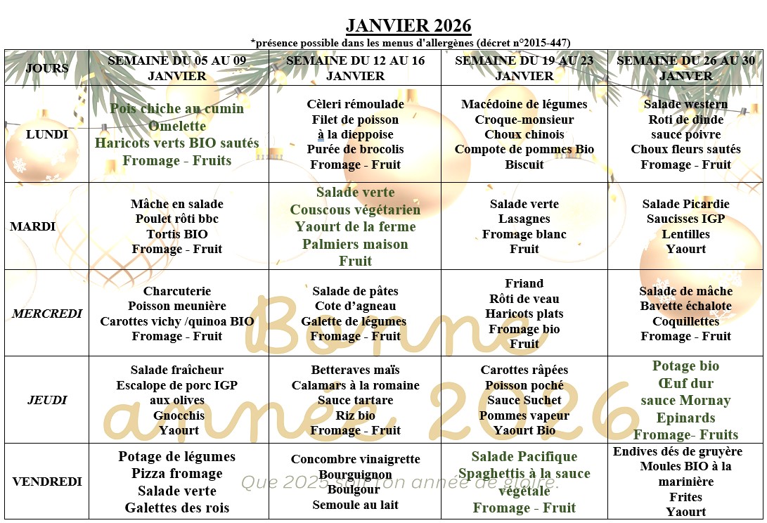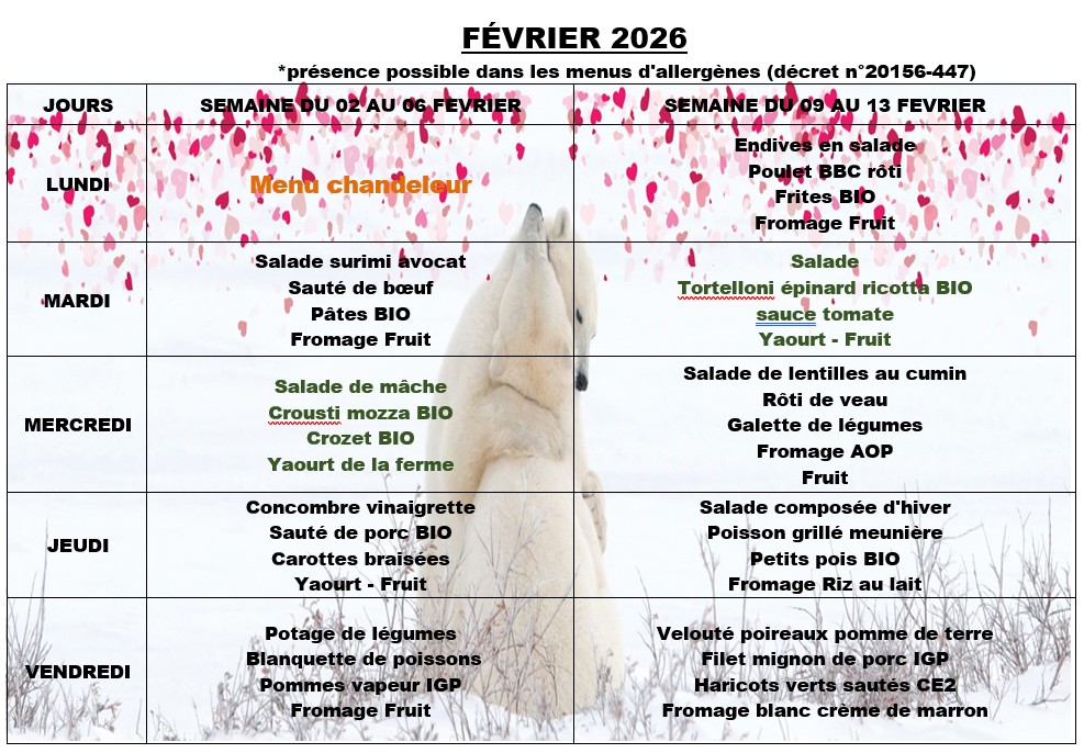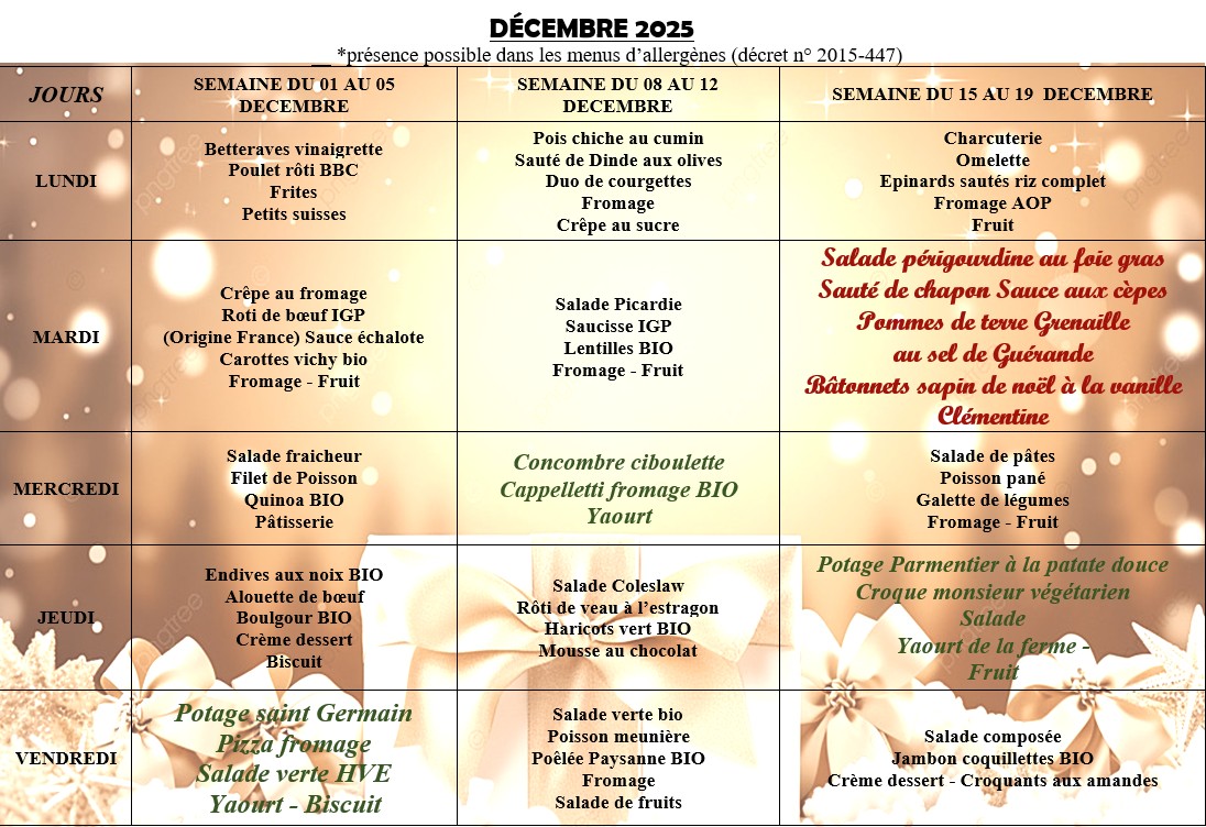 Les repas sont préparés sur place. Les paiements sont mensuels. Les inscriptions se font en mairie.